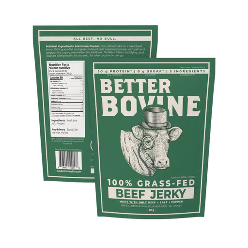 View full detailsOur refined take on classic beef jerky. Extra lean, 100% grass-fed beef, seasoned with salt and pepper. Clean, satisfying, and packed with 30g prot...