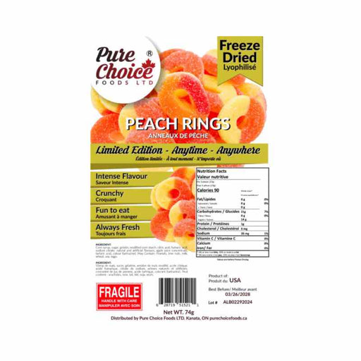Pure Choice FoodsFreeze Dried Peach Rings are a crunchy twist on an all time favorite gummi! You'll get all the same peachy, juicy flavor in these Freeze Dried Peac...