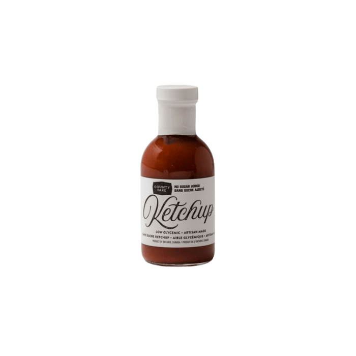Ingredients: Ontario crushed tomatoes, organic apple cider vinegar, natural sweetener, celery salt, garlic powder, onion powder, mustard powder, spices, black pepper, tlc.