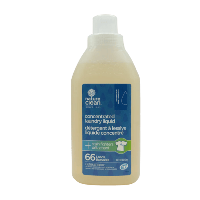 A little goes a long way! Each 1L bottle of Nature Clean 99% natural Laundry Concentrate washes 66 loads! Our stain fighting formula with plant-based enzymes removes even the toughest of stains while being gentle on the environment. It is small, lightweight, and uses less water for easy storage and a lower carbon footprint. This product is hypoallergenic, dermatologist tested, cruelty free, and septic tank and grey water safe. The perfect choice for your family!