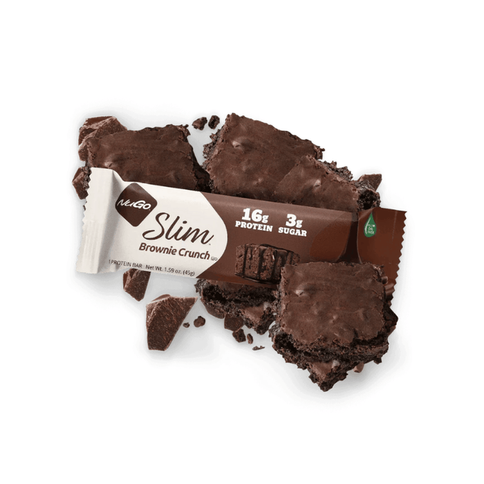 Craving those homemade chewy brownies but don’t want the sugar? NuGo Slim® Brownie Crunch combines the decadent taste of fresh-baked brownies with a great crunch from crushed almonds. This real dark chocolate coated bar has only 3g sugar, 16g protein, and is gluten free. Now you can satisfy your brownie cravings whenever they hit - no oven required!