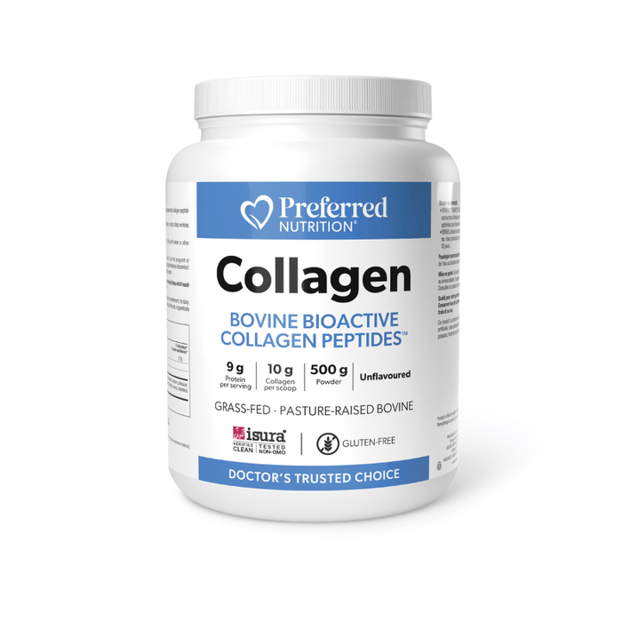 Preferred Nutrition Collagen features high-quality, grass-fed, pasture-raised bovine collagen peptides. Each daily scoop provides 10 g of absorbable, hydrolyzed collagen and 9 g of protein. This flavourless and odourless powder mixes easily into hot and cold beverages to actively support beautiful skin from the inside out.